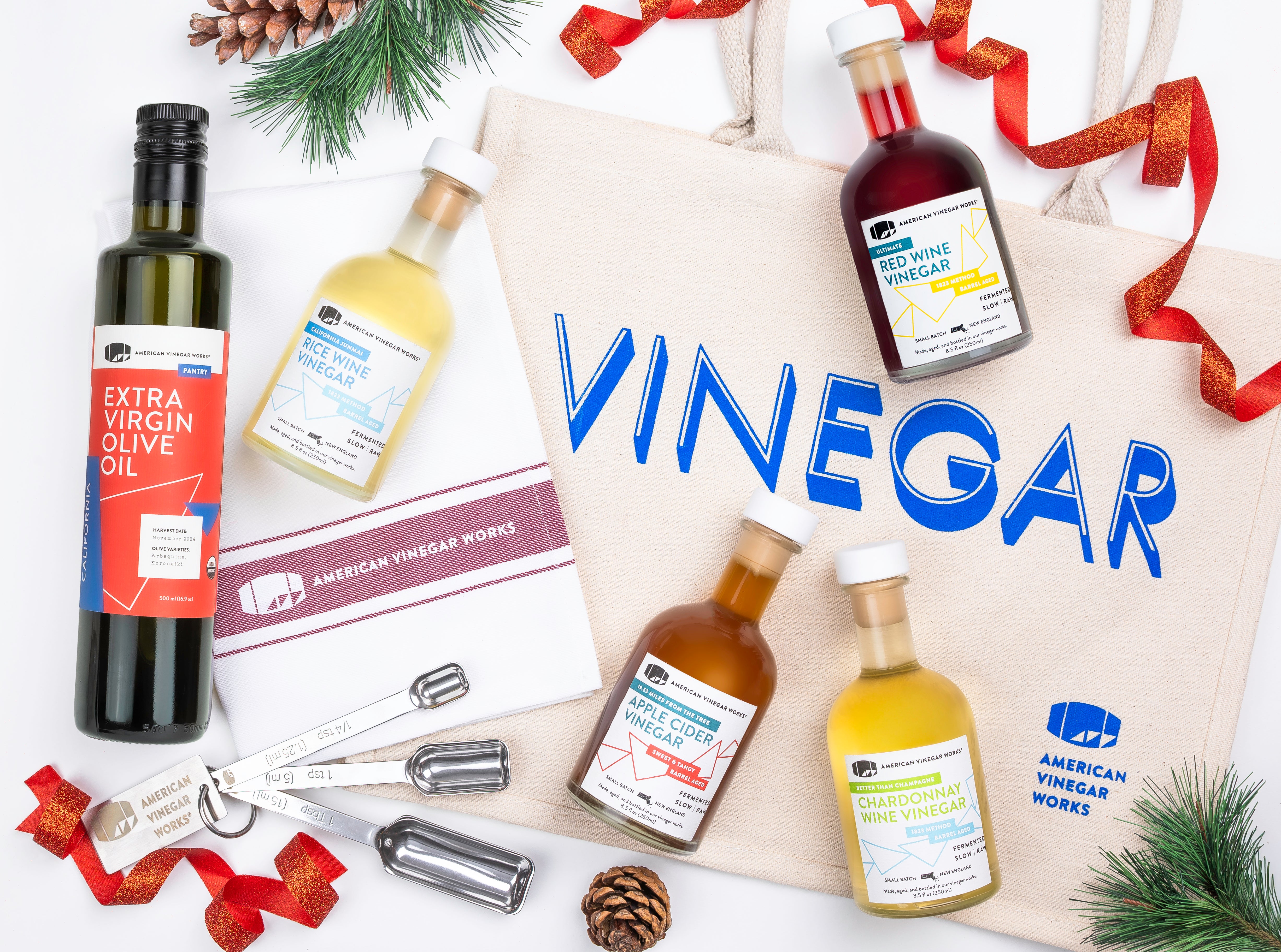 Meet the set that will bring join to the chef in your life. The Chef Set bundles our most popular barrel-aged vinegars with a fresh, grassy Organic California Extra Virgin Olive Oil—and adds in a custom tote bag, cotton tea towel, and our very own Vinaigrette stainless steel measuring spoons.