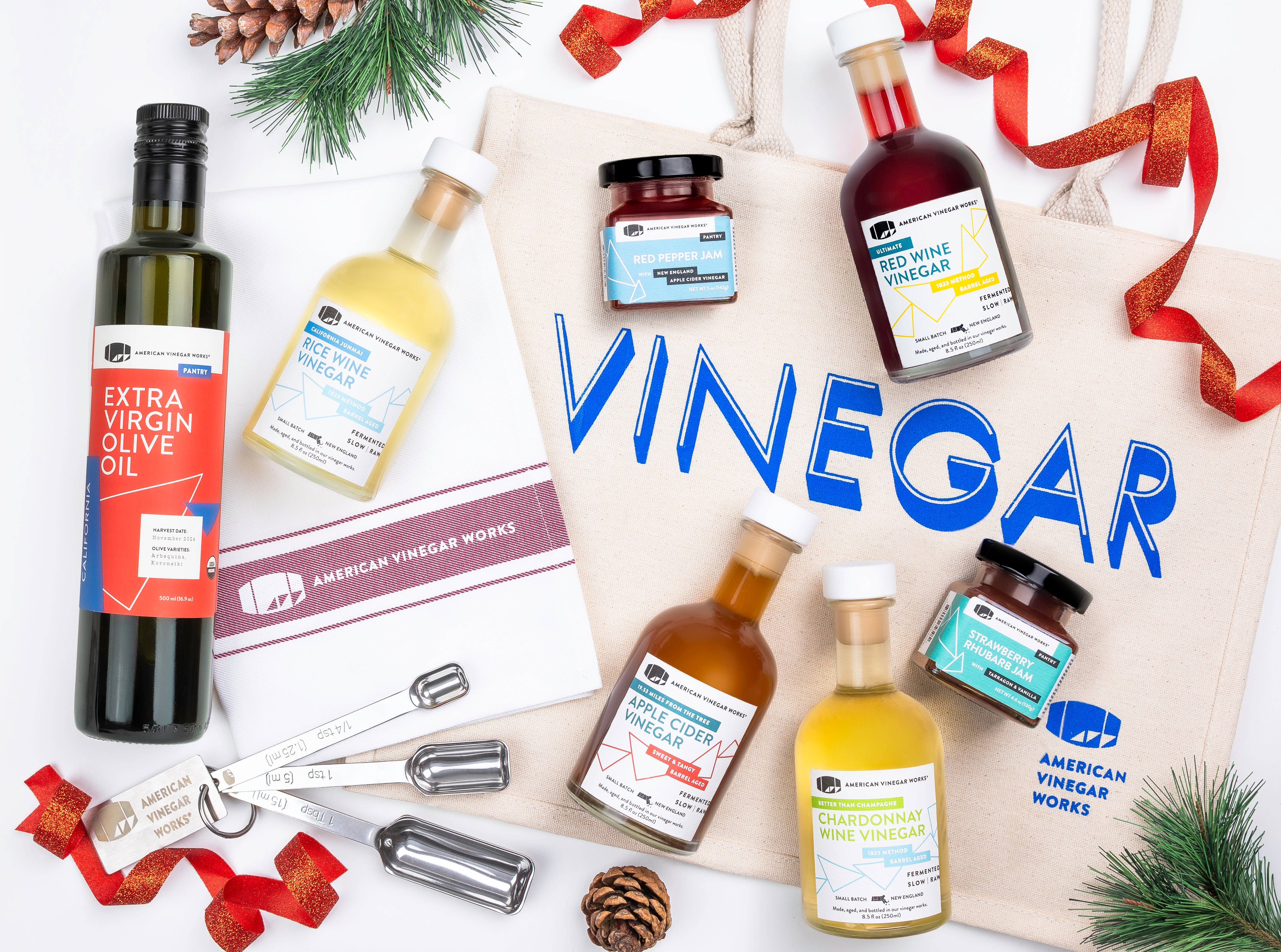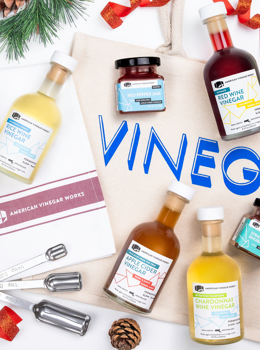 Includes four full sized glass bottles ( 8.5 oz/250ml) of our small-batch, barrel-aged vinegars.