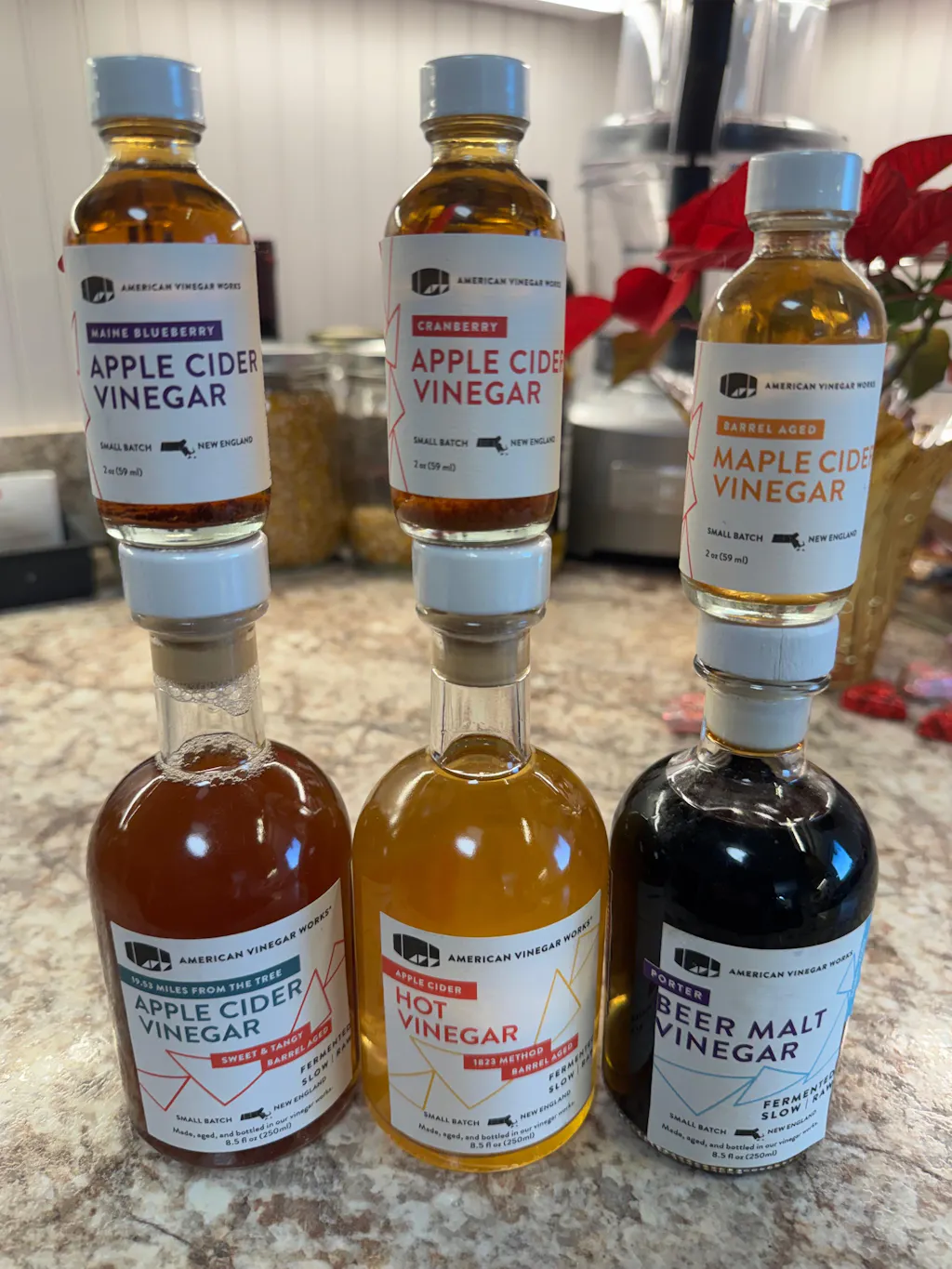 For a go-to vinaigrette, shake 1 part Apple Cider Vinegar with 2–3 parts extra-virgin olive oil, a pinch of salt, and a dab of mustard. Drizzle over charred broccoli, grilled corn, or a tomato-cucumber salad. Stir into pot liquor and braises, or spike chili, pozole, and gumbo just before serving. Finish fried chicken, oysters, or crispy potatoes with a bright hit right at the table.